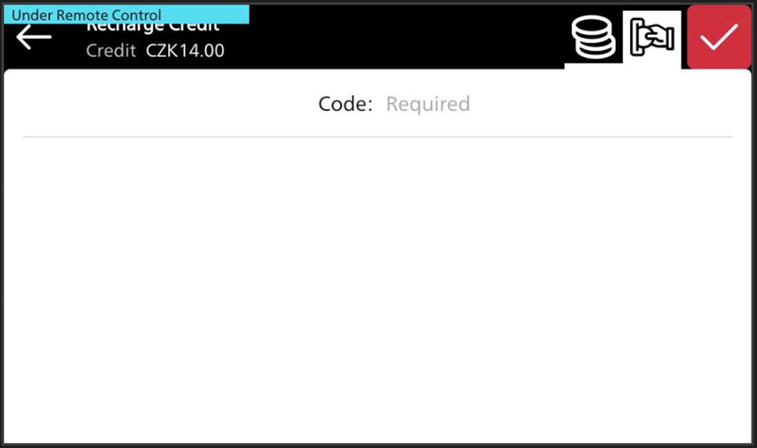After tapping the Recharge Credit action, the Recharge Credit screen opens, and the user can enter a recharge code from a voucher.