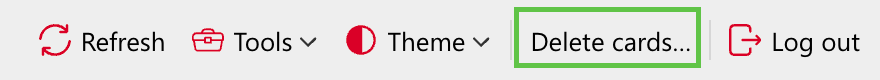 Se si dispone del Cancellare le carte L'utente può eliminare le schede di altri utenti. Questo è previsto, ad esempio, per le situazioni in cui un'organizzazione ha un Font Desk in cui l'utente restituisce la propria scheda e questa deve essere rimossa dal sistema.