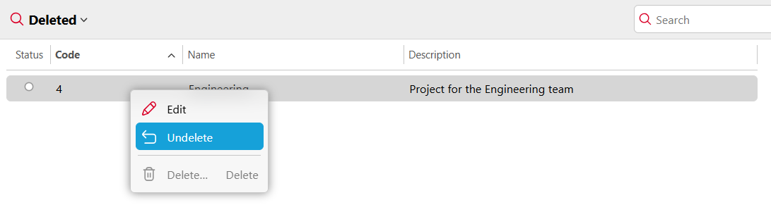 Ripristino dei progetti cancellati