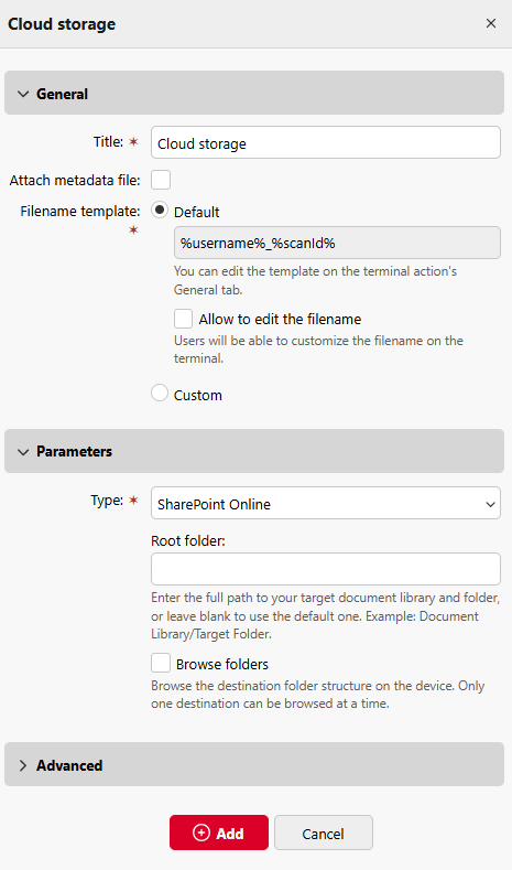 Se un amministratore ha collegato SharePoint Online a Easy Scanma un singolo utente non ha ancora collegato il proprio account personale, può comunque utilizzare Easy Scan con SharePoint Online impostato come destinazione.