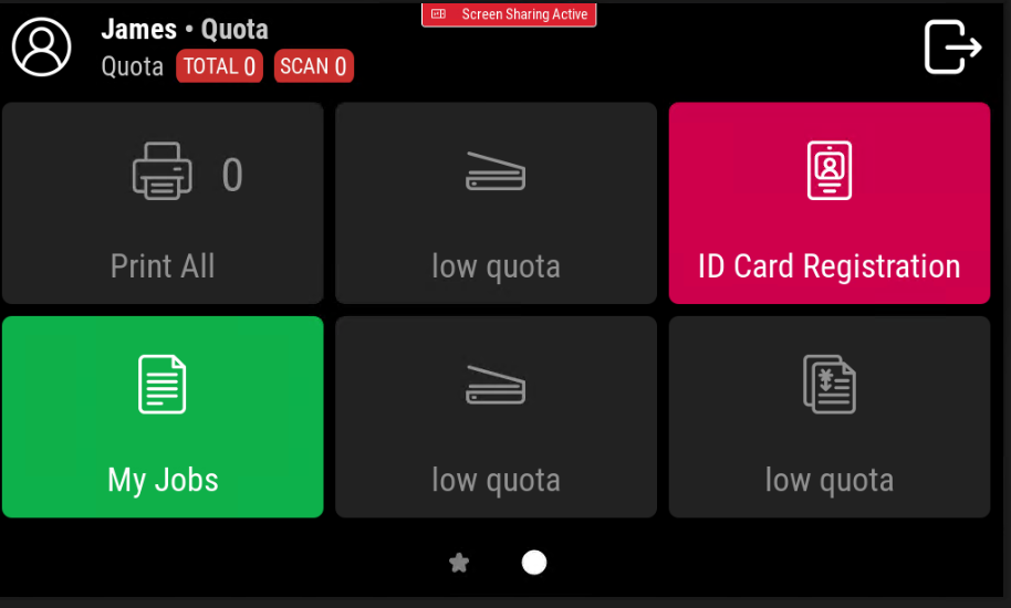 Con il Quota Quando la funzione è attivata, gli utenti non possono stampare, copiare o scansionare dopo aver raggiunto o superato il limite della loro quota. Possono visualizzare le loro quote attuali nella loro sessione sull'Embedded Terminal.